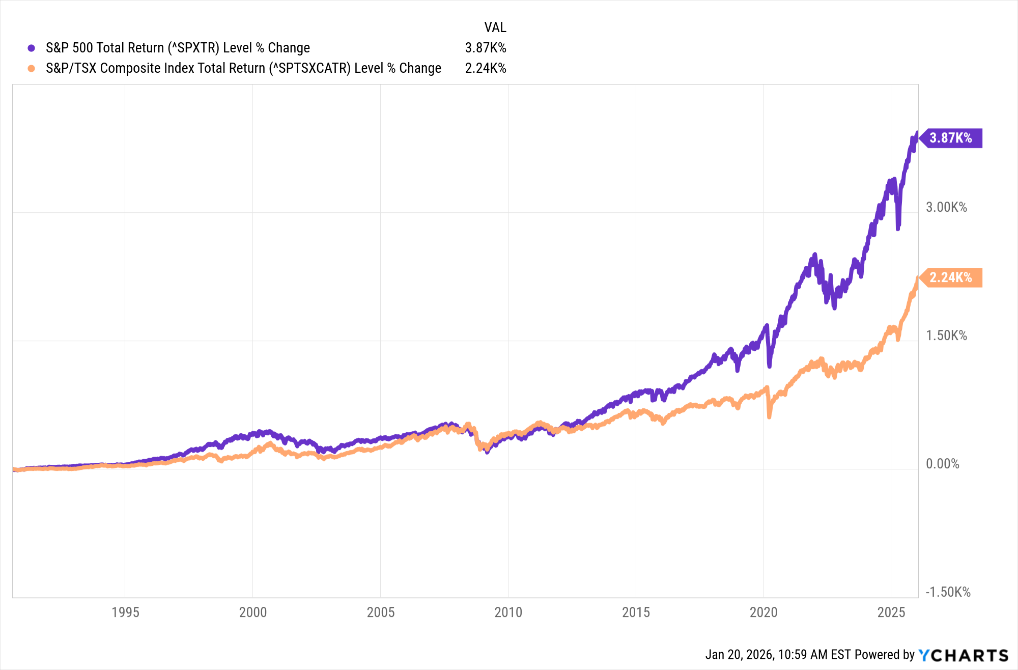 3. S&P 500 Total Return (USD), as of January 20, 2026. S&P/TSX Composite Index Total Return (CAD), as of January 20, 2026