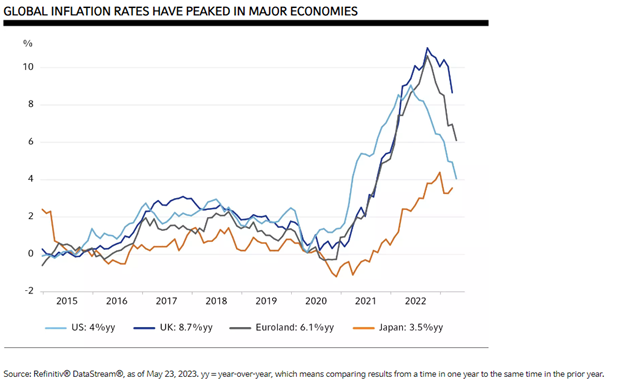 Recession indicators such as an inverted yield curve, central bank tightening, slowing manufacturing activity and eroding consumer confidence readings are all potential warning signs. Meanwhile, measures of real economic activity such as job growth and household spending are only gradually moderating, keeping inflation firm and forcing central banks to continue raising borrowing rates. Over the last six months, four U.S. banks were forced to be rescued, alongside Credit Suisse in Europe (though this is a testament to the resiliency of the banking system). The U.S. went back and forth on the debt ceiling drama; geopolitical uncertainty is still running high (Russia/Ukraine, China, France protests); and central banks across the globe have held the position that there is still more work to do against inflation.