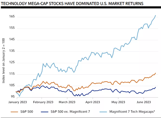 - Mega cap stocks are once again dominating the performance of the U.S. equity market. This time it is driven by excitement around generative artificial intelligence technologies such as ChatGPT which we wrote about here.