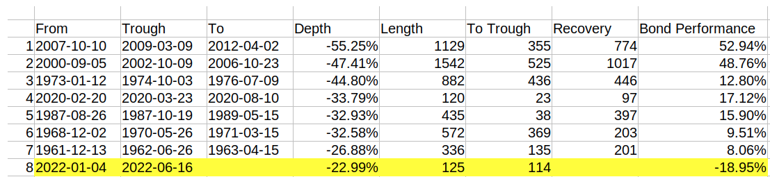 The current bear market ranks #8. It’s currently approaching day 150 and far from recovering to January 2022 highs.